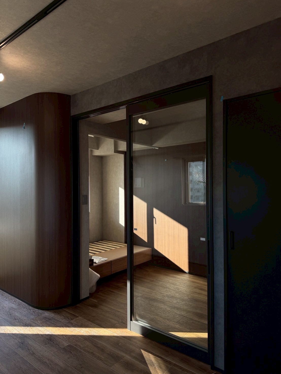 ベッドルームの壁位置変更は、実はお施主様(ご友人)からのアイデアでした。 寸法的にもかなり攻めた計画だったため、ベッドがきれいに納まるまでは不安もありましたが、 その経験を通して「提案の幅はまだまだ広げられる」と強く実感するきっかけとなりました。