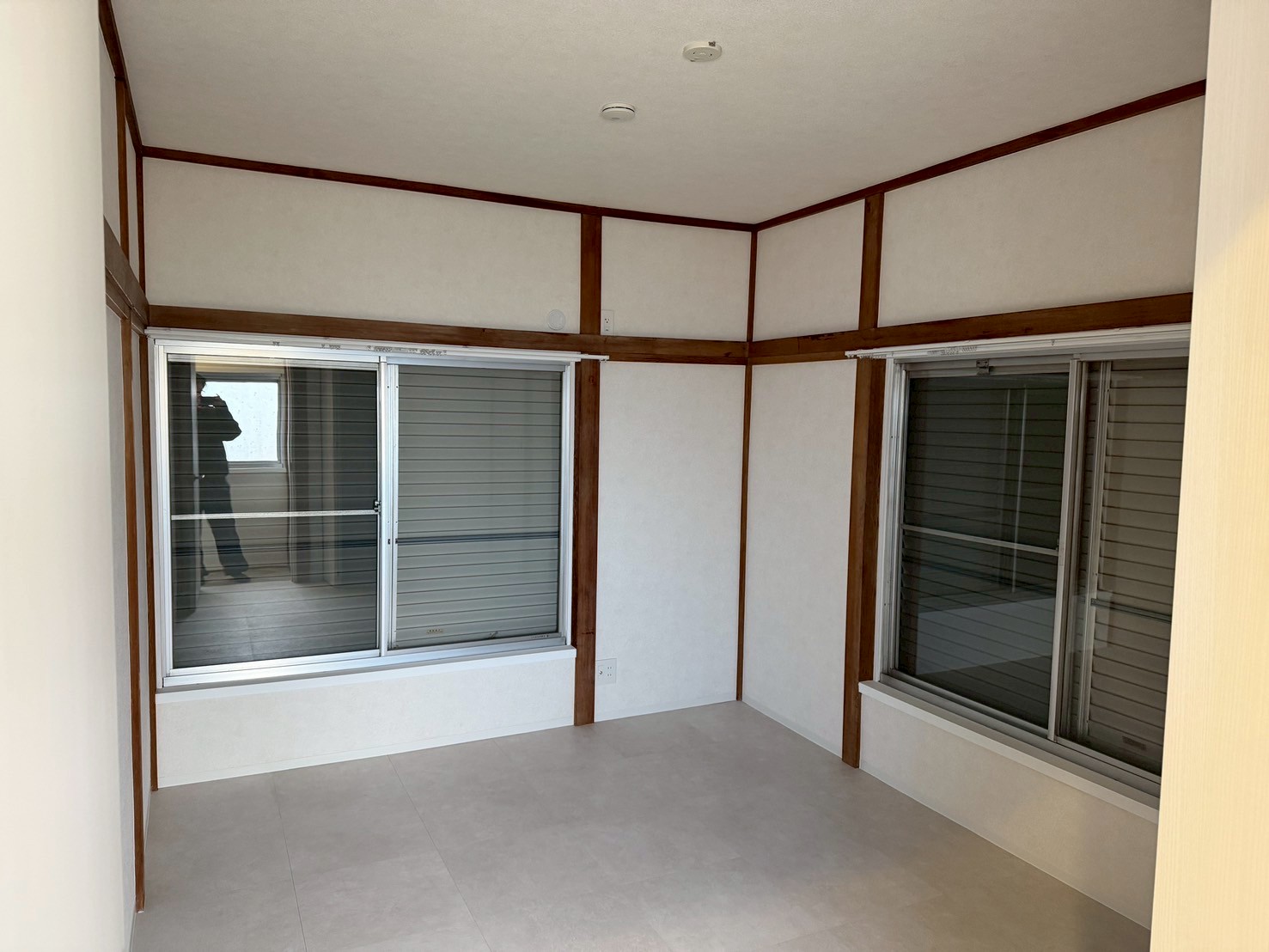 思い出のある既存障子や回り縁を一部残し、障子は白塗装で再生